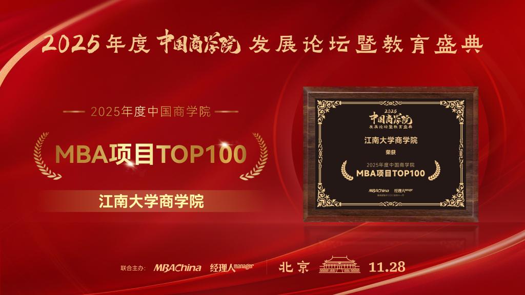 • 江南大學(xué)商學(xué)院斬獲“2025年度中國商學(xué)院MBA項目TOP100”等多...2025-12-01
